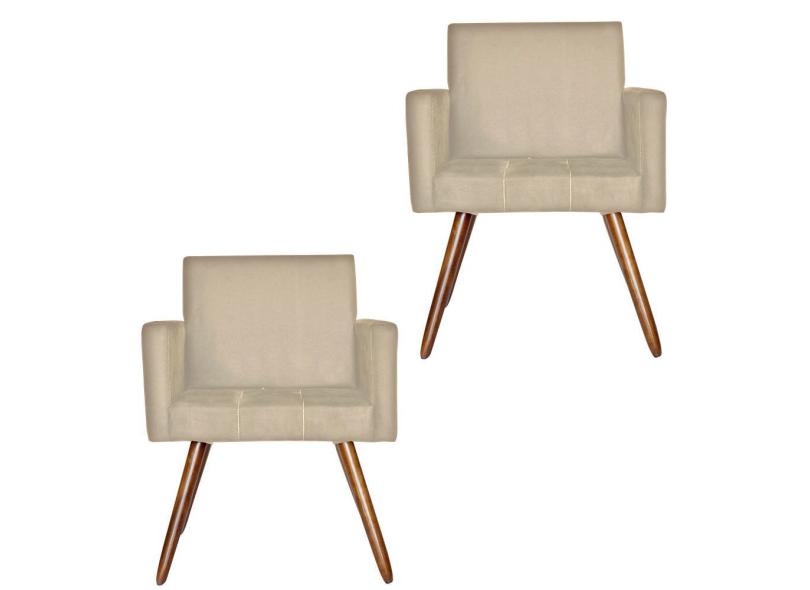 Kit 02 Poltronas Decorativas Pés Palito Vitoria Suede Bege - Kasa Sofá