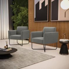 Kit 02 Poltronas Marisa Suede Grafite Base X Industrial - D`Rossi