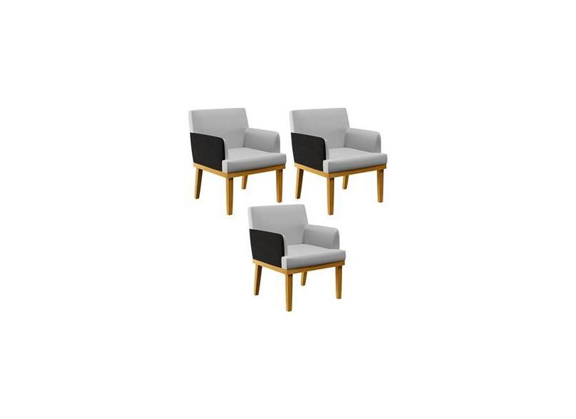 Kit 03 Poltronas Decorativas Para Sala de Estar Beatriz W01 Linho Corano - Lyam Decor