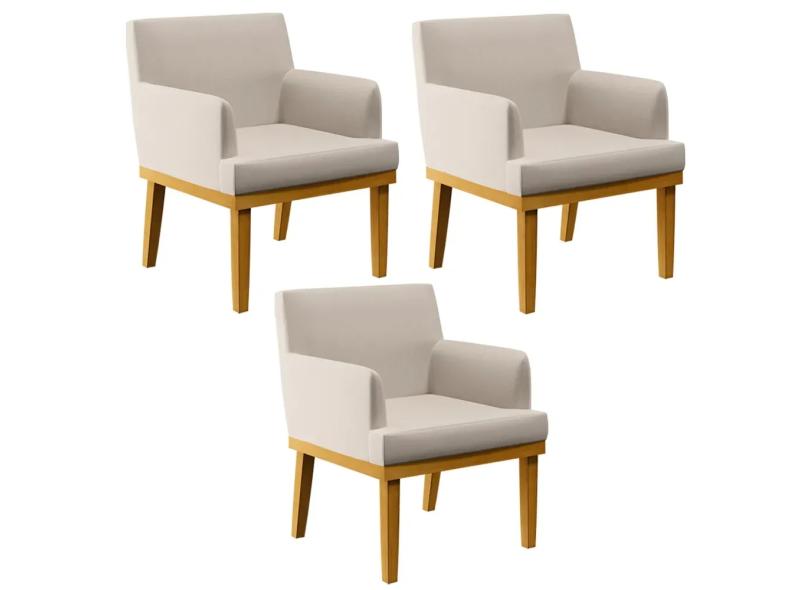 Kit 03 Poltronas Decorativas Para Sala de Estar Beatriz W01 Linho Cru - Lyam Decor