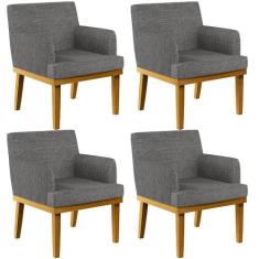 Kit 04 Poltronas Decorativas Para Sala de Estar Beatriz W01 Linho Escuro - Lyam Decor