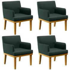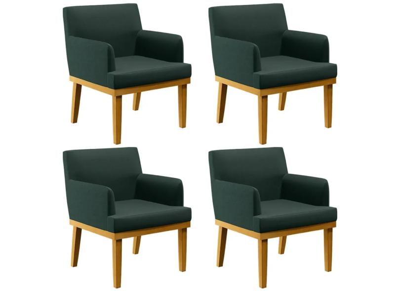 Kit 04 Poltronas Decorativas Para Sala de Estar Beatriz W01 Linho Verde Musgo - Lyam Decor