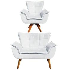 Kit 1 Namoradeira E 1 Poltrona Giratória Opala Suede Marrom