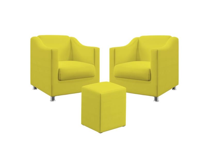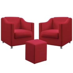 Kit 2 Poltronas Decorativa Alya E Puff Izar Sued Aradecor