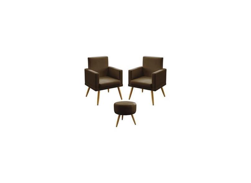 Kit 2 Poltronas Decorativas Estofada Nina e Puff Solar Com Rodapé Sued Marrom Aradecor