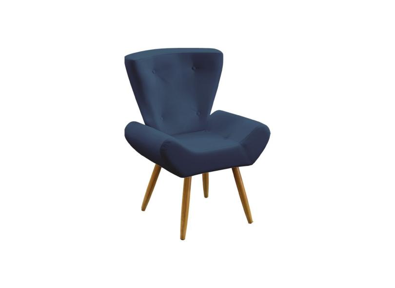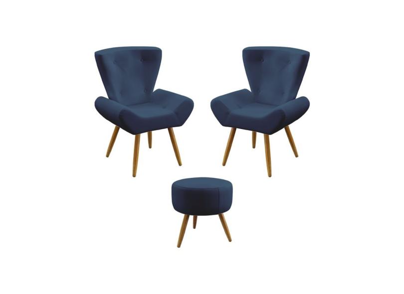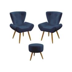 Kit 2 Poltronas Decorativas Estofada Polaris e Puff Solar Sued Marinho Aradecor
