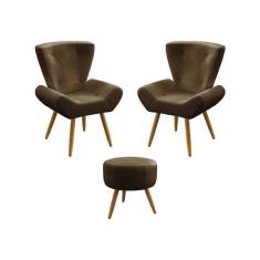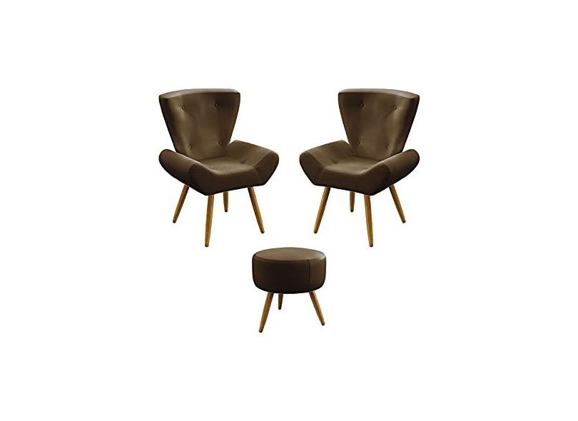 Kit 2 Poltronas Decorativas Estofada Polaris e Puff Solar Sued Marrom Aradecor