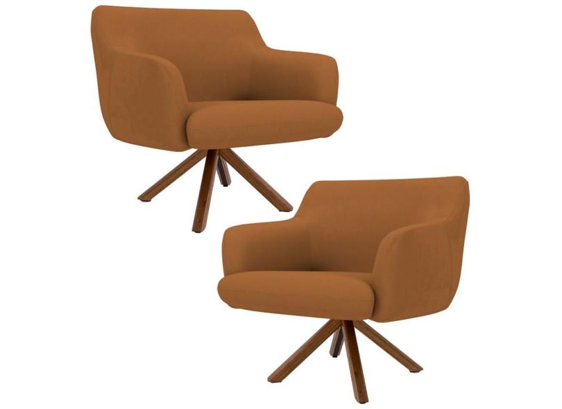 O menor preço encontrado no Brasil para Kit 2 Poltronas Decorativas Giratórias Base Giromad Madeira Jade B-262 Veludo Telha - Domi atualmente é R$ 3.297,23.