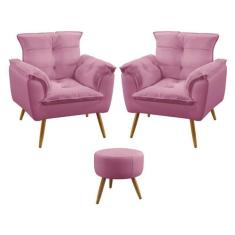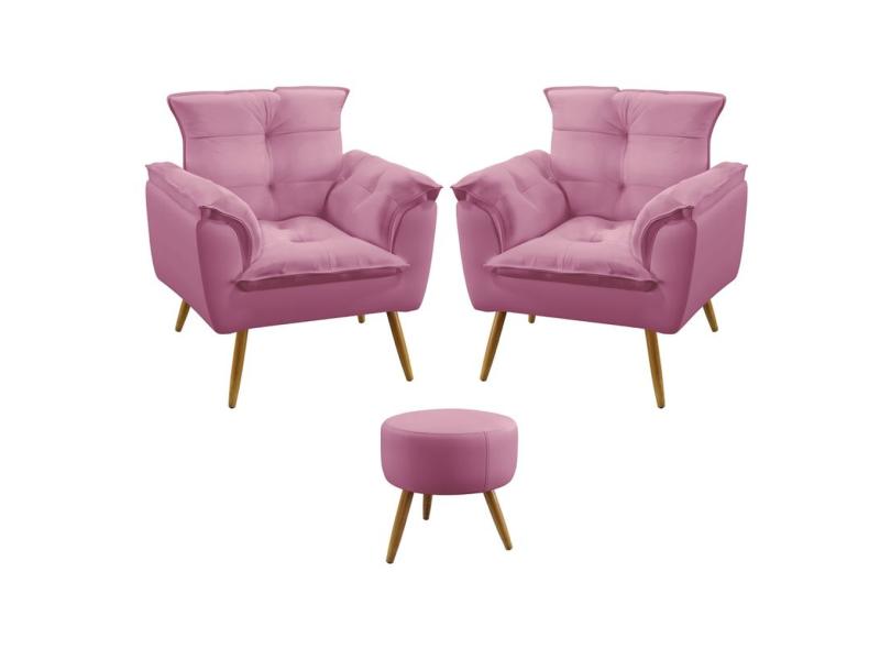 Kit 2 Poltronas Decorativas Opala e Puff Solar Suede Rosê Aradecor