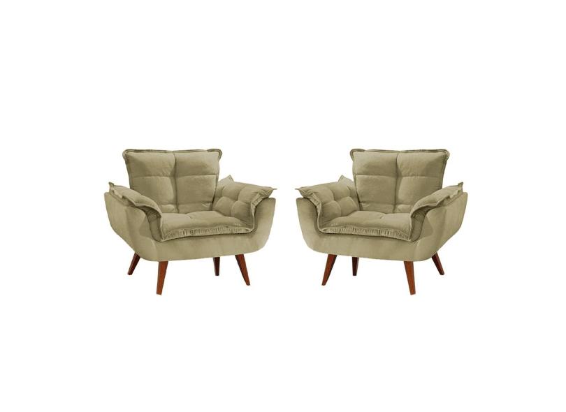 Kit 2 Poltronas Decorativas Opala Suede Bege Pés Palito