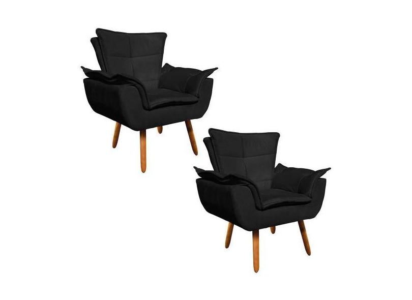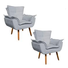 Kit 2 Poltronas Decorativas Sala de Estar Pés Palito Opla Suede