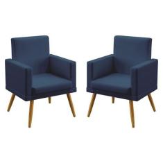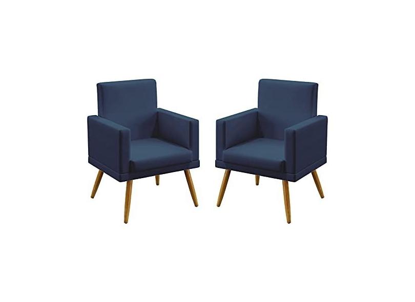 Kit 2 Poltronas Decorativas Vega Com Rodapé Sued Marinho Aradecor