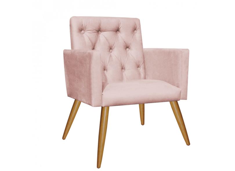 Kit 2 Poltronas e Puff Redondo Nina Capitonê Pé Palito Suede Rose Gold - Ahazzo Móveis