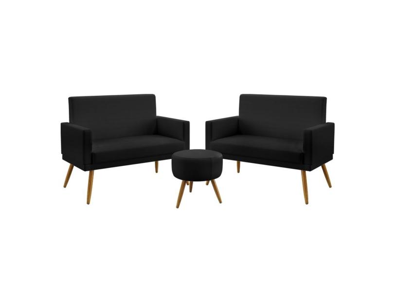 Kit 2 Poltronas Namoradeiras Decorativas Estofadas Nina Com Rodapé Puff Solar Sued Aradecor