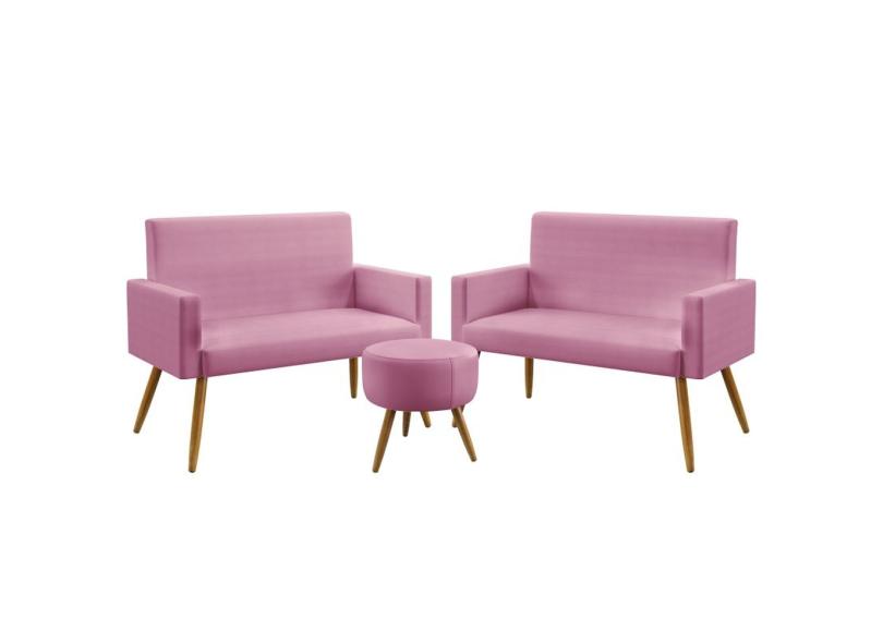 Kit 2 Poltronas Namoradeiras Decorativas Vega e Puff Solar Sued Rosê Aradecor