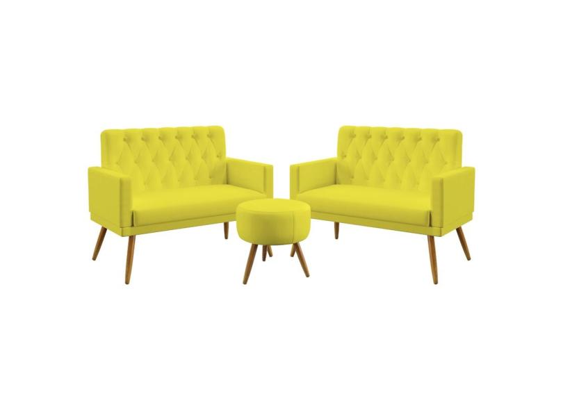 Kit 2 Poltronas Namoradeiras Vega Com Rodapé E Botões Puff Solar Capitonê Sued Aradecor