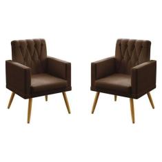 Kit 2 Poltronas Nina Com Rodapé e Botões em Capitonê Para Sala de Estar Couro Artificial Marrom Aradecor