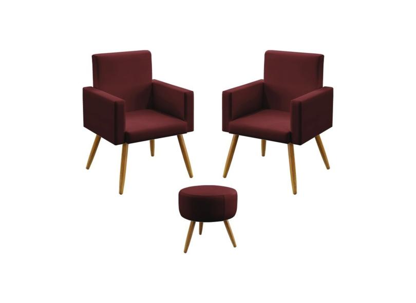 O menor preço encontrado no Brasil para Kit 2 Poltronas Nina e Puff Solar Sued Bordô Aradecor atualmente é R$ 606,58.