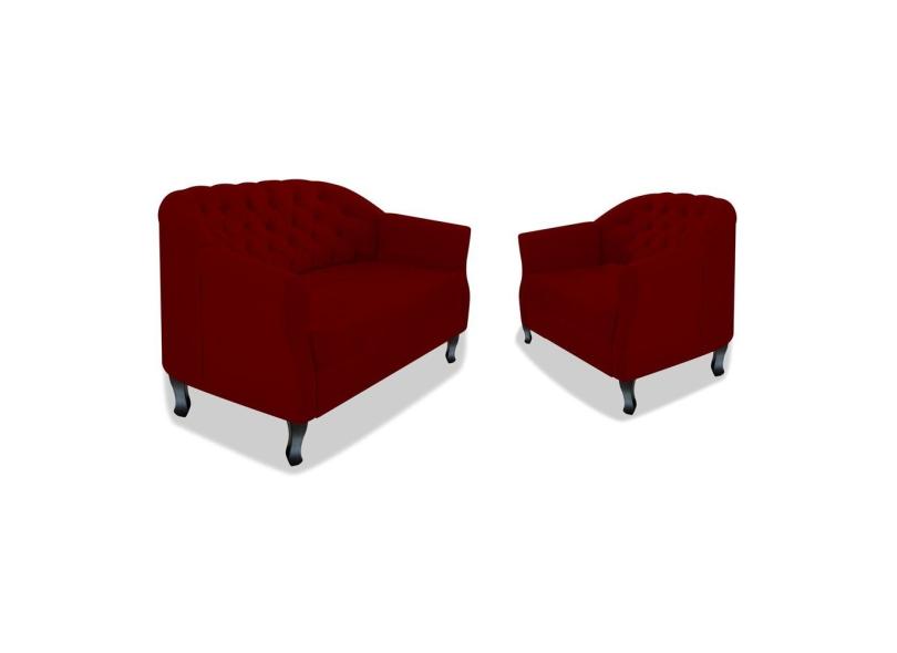 Kit Namoradeira Sofá Recamier e Poltrona Julia Pés Luís Xv Com Botonê para Sala de Estar Recepção Quarto Escritório Bordô Suede - AM Decor