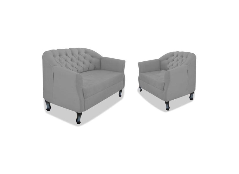 Kit Namoradeira Sofá Recamier e Poltrona Julia Pés Luís Xv Com Botonê para Sala de Estar Recepção Quarto Escritório Corano - AM Decor