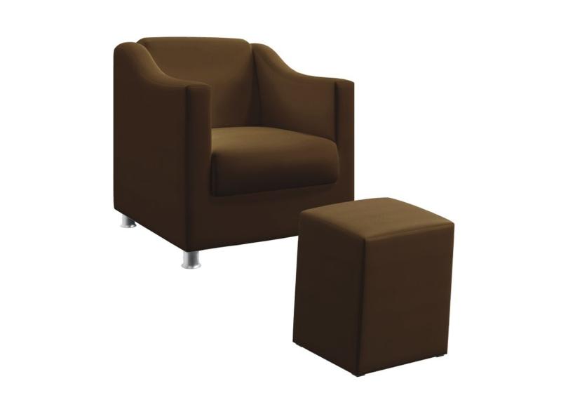 Kit Poltrona Decorativa Estofada Alya E Puff Izar Sued Marrom Aradecor