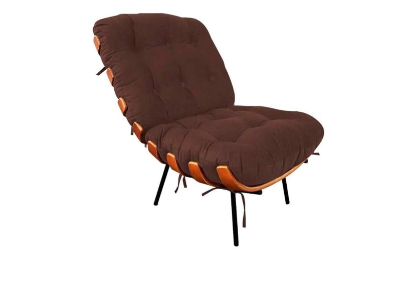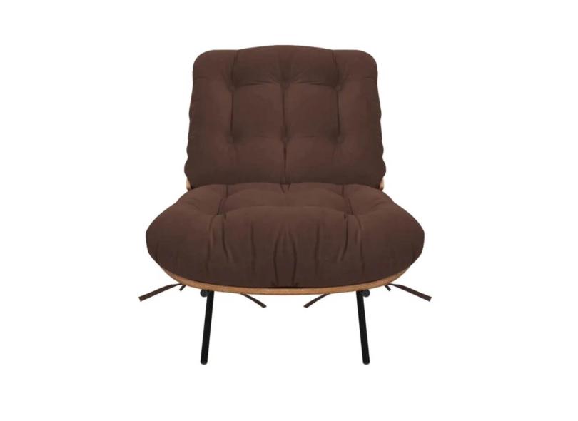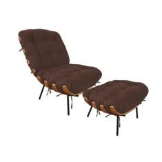 Kit Poltrona e Puff Costela Suede Marron Vallisa Decor