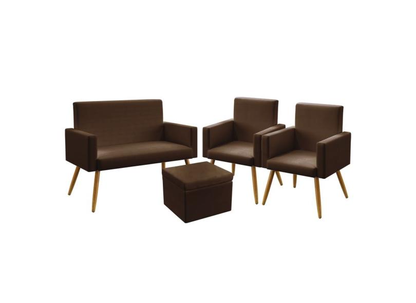 Kit Poltrona Namoradeira e 2 Poltronas Decorativas Almofadadas Nina com Puff Quasar Couro Artificial Marrom Aradecor