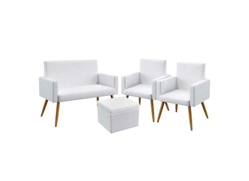 Kit Poltrona Namoradeira e 2 Poltronas Decorativas Almofadadas Vega com Puff Quasar Couro Artificial Aradecor