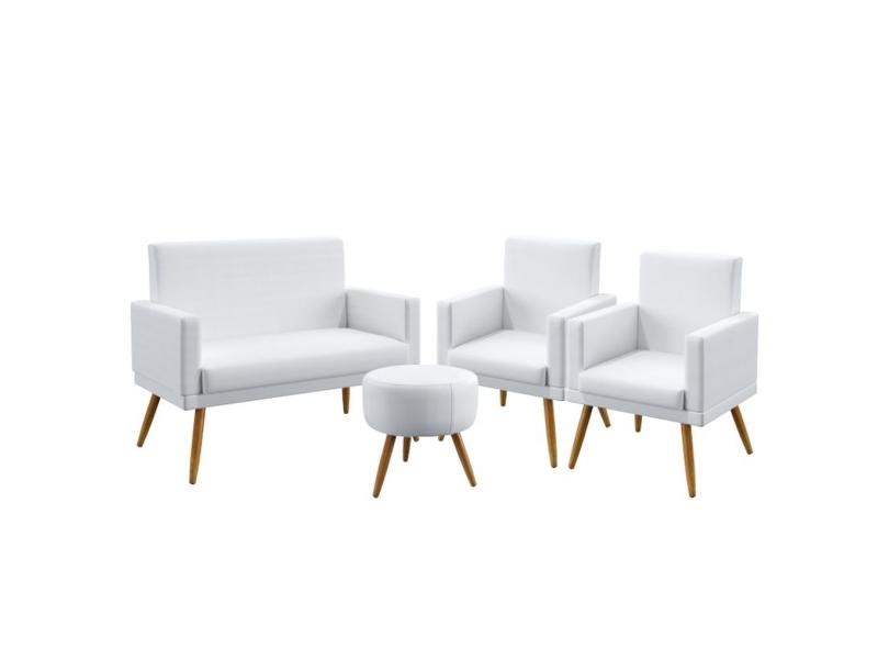 Kit Poltrona Namoradeira e 2 Poltronas Decorativas Almofadas Nina Com Rodapé Puff Solar Couro Artificial Aradecor
