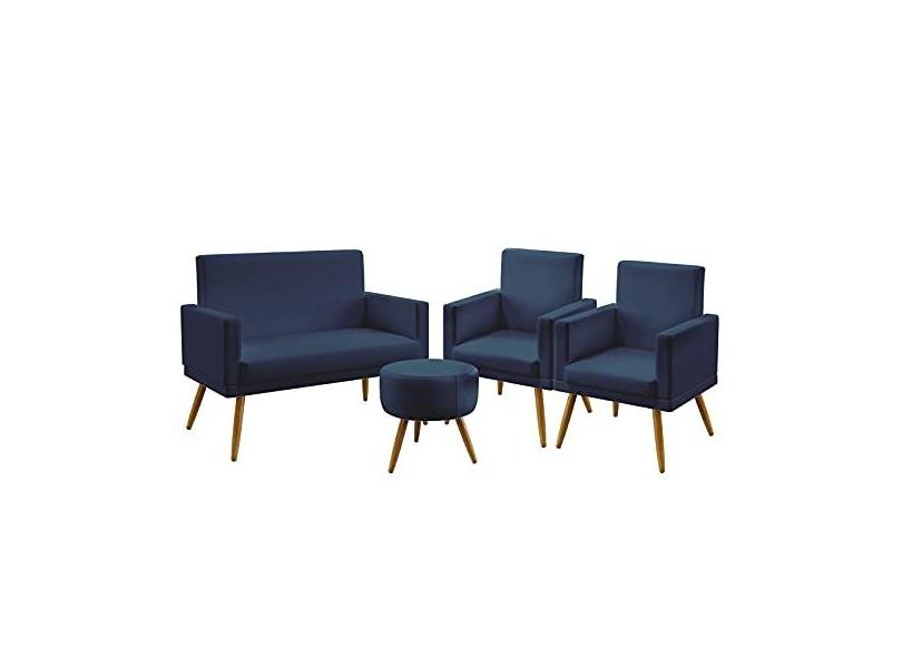 Kit Poltrona Namoradeira e 2 Poltronas Decorativas Estofada Nina Com Rodapé Puff Solar Sued Marinho Aradecor