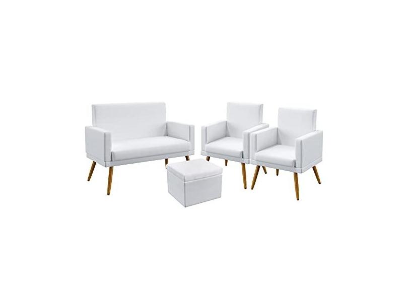 Kit Poltrona Namoradeira e 2 Poltronas Decorativas Estofada Nina Rodapé e Puff Quasar Couro Artificial Aradecor