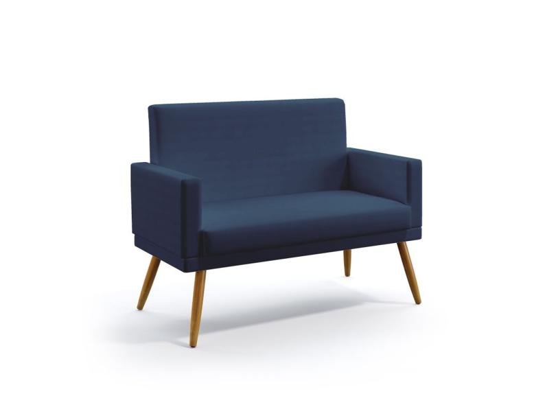 Kit Poltrona Namoradeira e 2 Poltronas Decorativas Estofada Vega Com Rodapé com Puff Quasar Sued Marinho Aradecor