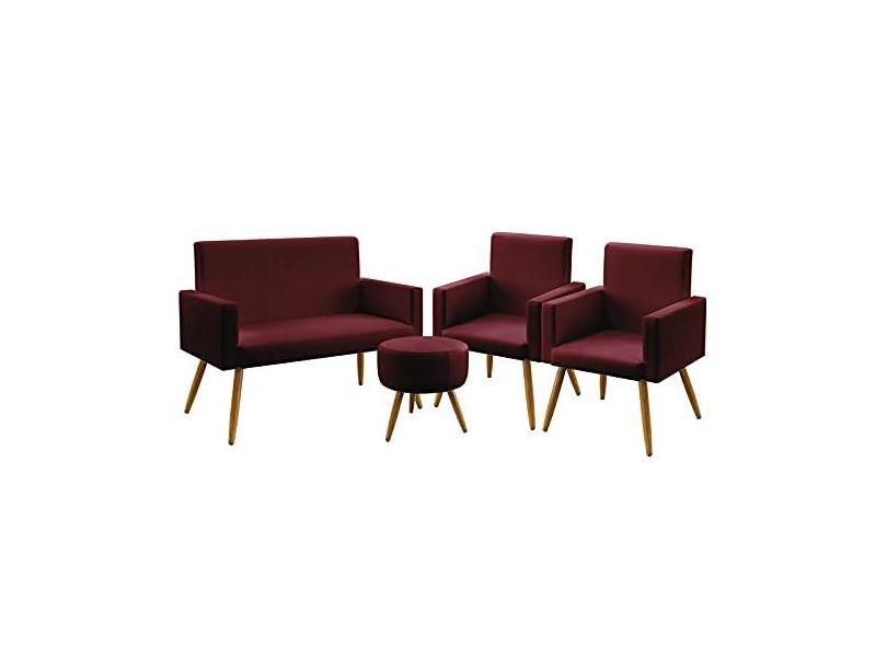Kit Poltrona Namoradeira e 2 Poltronas Decorativas Estofada Vega Puff Solar Sued Bordô Aradecor