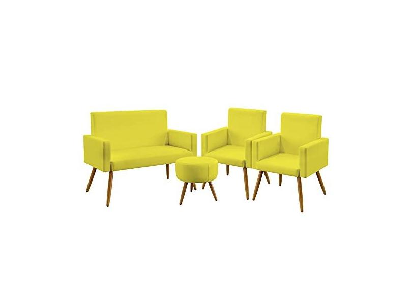 Kit Poltrona Namoradeira e 2 Poltronas Decorativas Nina Puff Solar Suede Aradecor