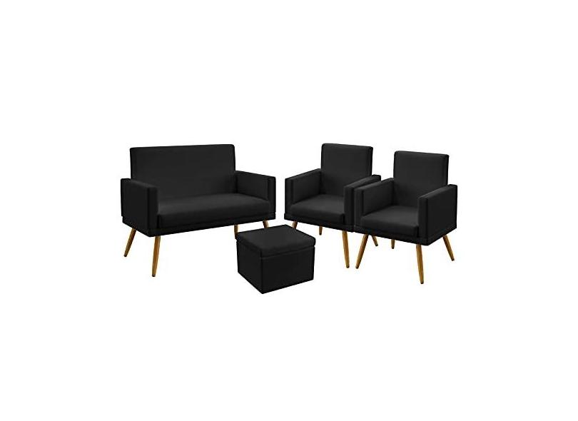 Kit Poltrona Namoradeira e 2 Poltronas Decorativas Nina Rodapé e Puff Quasar Couro Artificial Aradecor