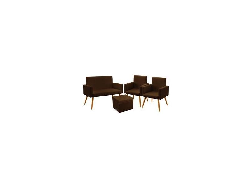 Kit Poltrona Namoradeira e 2 Poltronas Decorativas Vega com Puff Quasar Sued Marrom Aradecor