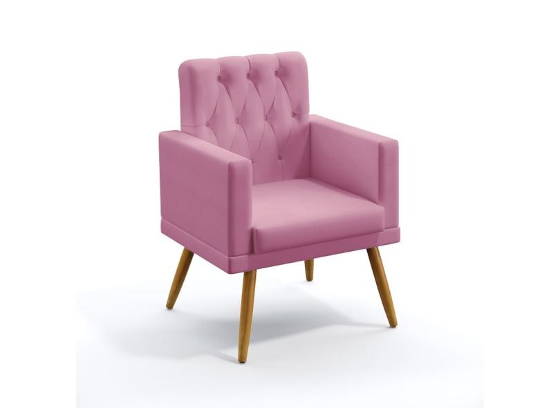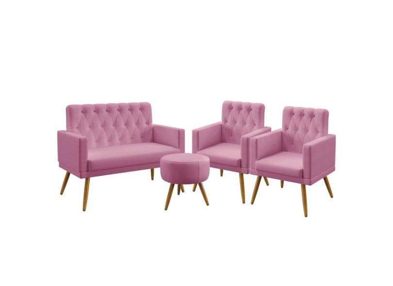 Kit Poltrona Namoradeira e 2 Poltronas Decorativas Vega Com Rodapé E Botões Capitonê Puff Solar Sued Rosê Aradecor