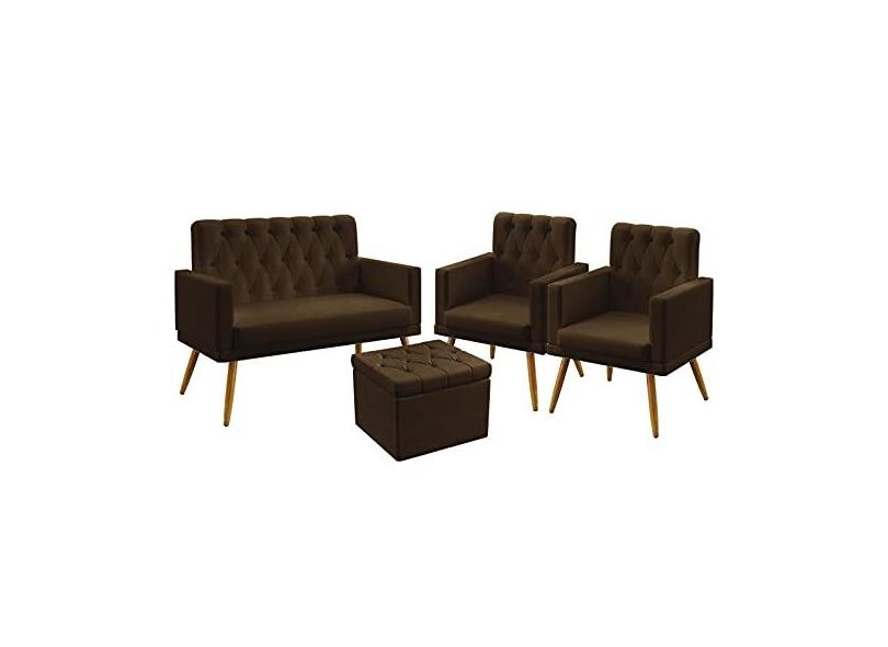 O menor preço encontrado no Brasil para Kit Poltrona Namoradeira e 2 Poltronas Decorativas Vega Rodapé com Puff Quasar com Botões Suede Marrom Aradecor atualmente é R$ 1.107,83.