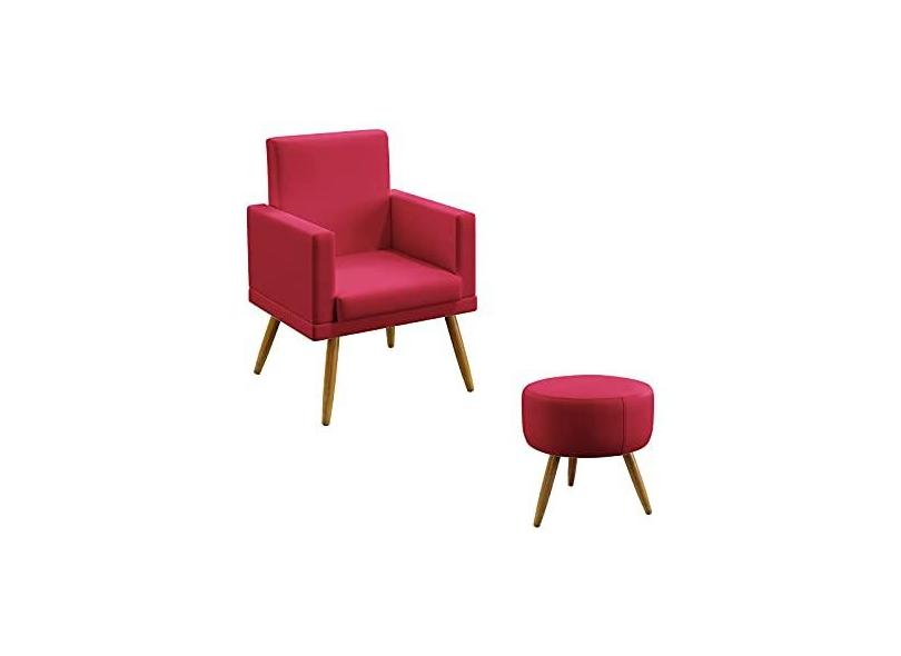 Kit Poltrona Nina e Puff Solar Com Rodapé Sued Aradecor