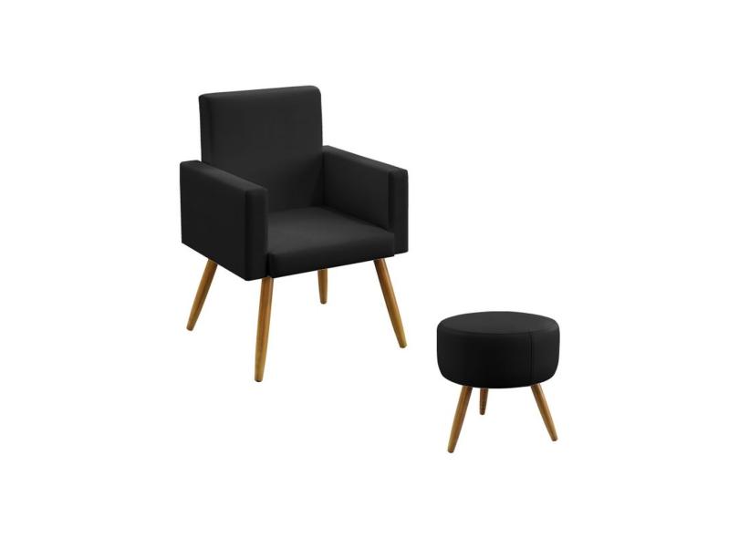 Kit Poltrona Nina e Puff Solar Couro Artificial Aradecor
