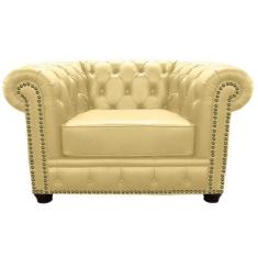 Poltrona Chesterfield com Pés Madeira Couro Bege - Gran Belo