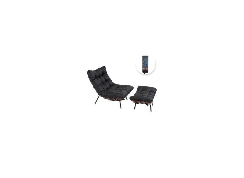 Poltrona Costela Massageadora e Pufe em Couro - Imbuia com Base