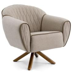 Poltrona Decorativa Base Giratória de Madeira Nina D02 Tressê Bege Rústico C-470 - Lyam Decor