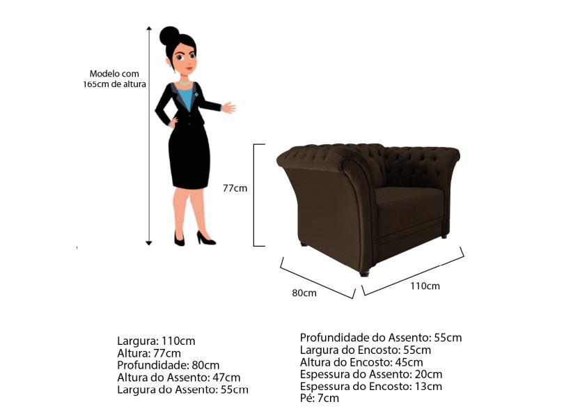 Poltrona Decorativa Chesterfield Sofia Corano Marrom - Doce Sonho Móveis