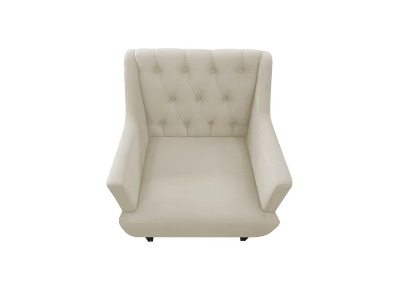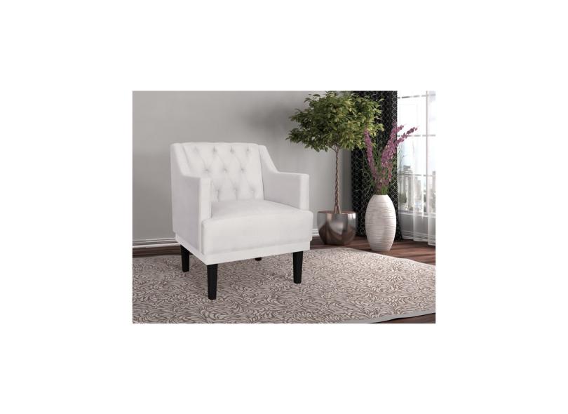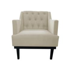 Poltrona Decorativa Clássica Capitonê Corino Bege Pés Madeira Mz Decor