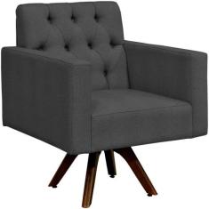 Poltrona Decorativa Giratória Sala de Estar Base de Madeira Manu Capitonê Linho