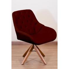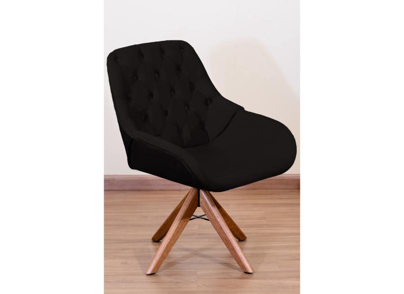 Poltrona Decorativa Linda Pé Giratório de Madeira Capitonê