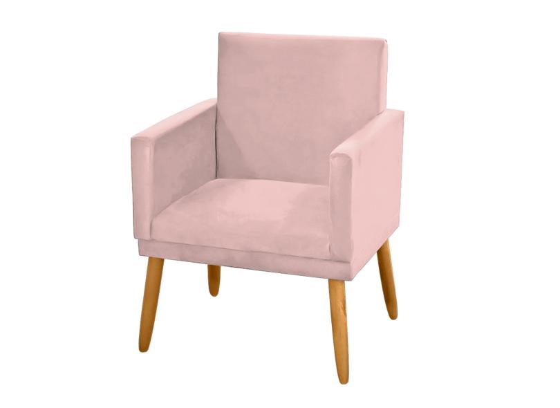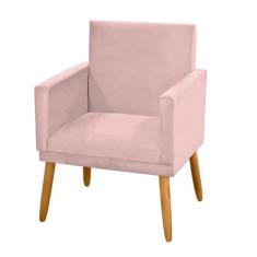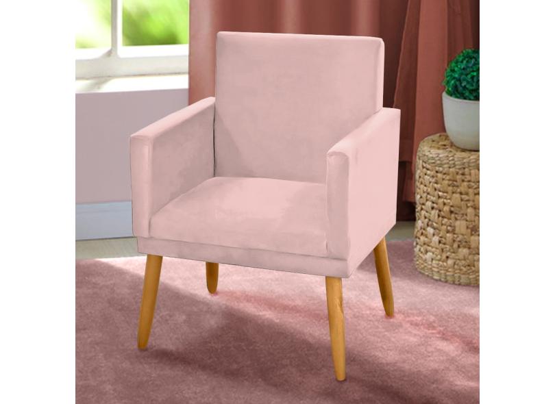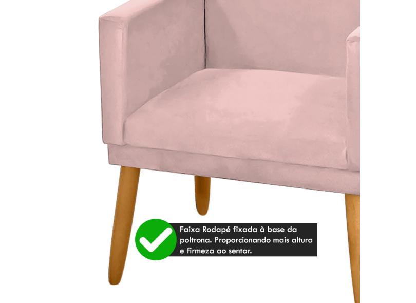 Poltrona Decorativa Nina Veludo Rosê com Rodapé