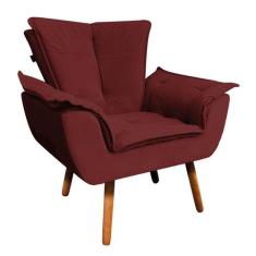 Poltrona Opala Veludo Marsala Pés Palito Castanho - D'Rossi