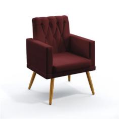 Poltrona Vega Com Rodapé E Botões Capitonê Sued Bordô Aradecor